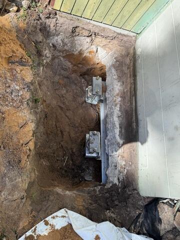 This Jacksonville Beach property was showing signs of foundation settlement, with cracks forming along the exterior wall and uneven areas near the structure. Our team installed a helical pier system to permanently stabilize the foundation and prevent further shifting caused by sandy coastal soil conditions. The piers were driven to load-bearing strata and securely bracketed to the home’s footing, restoring long-term stability. After installation, the area was neatly backfilled and the yard left looking clean and level.