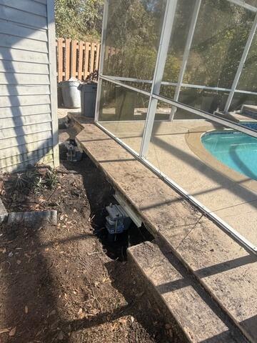In Jacksonville, FL, this pool deck was experiencing settlement that caused uneven concrete and structural concerns along the screened enclosure. Our team installed helical piers beneath the concrete to permanently stabilize and support the affected area. These piers are driven deep into stable soil, transferring the load away from weak ground and preventing further sinking. The result is a reinforced, level, and secure pool deck with long-term structural stability.